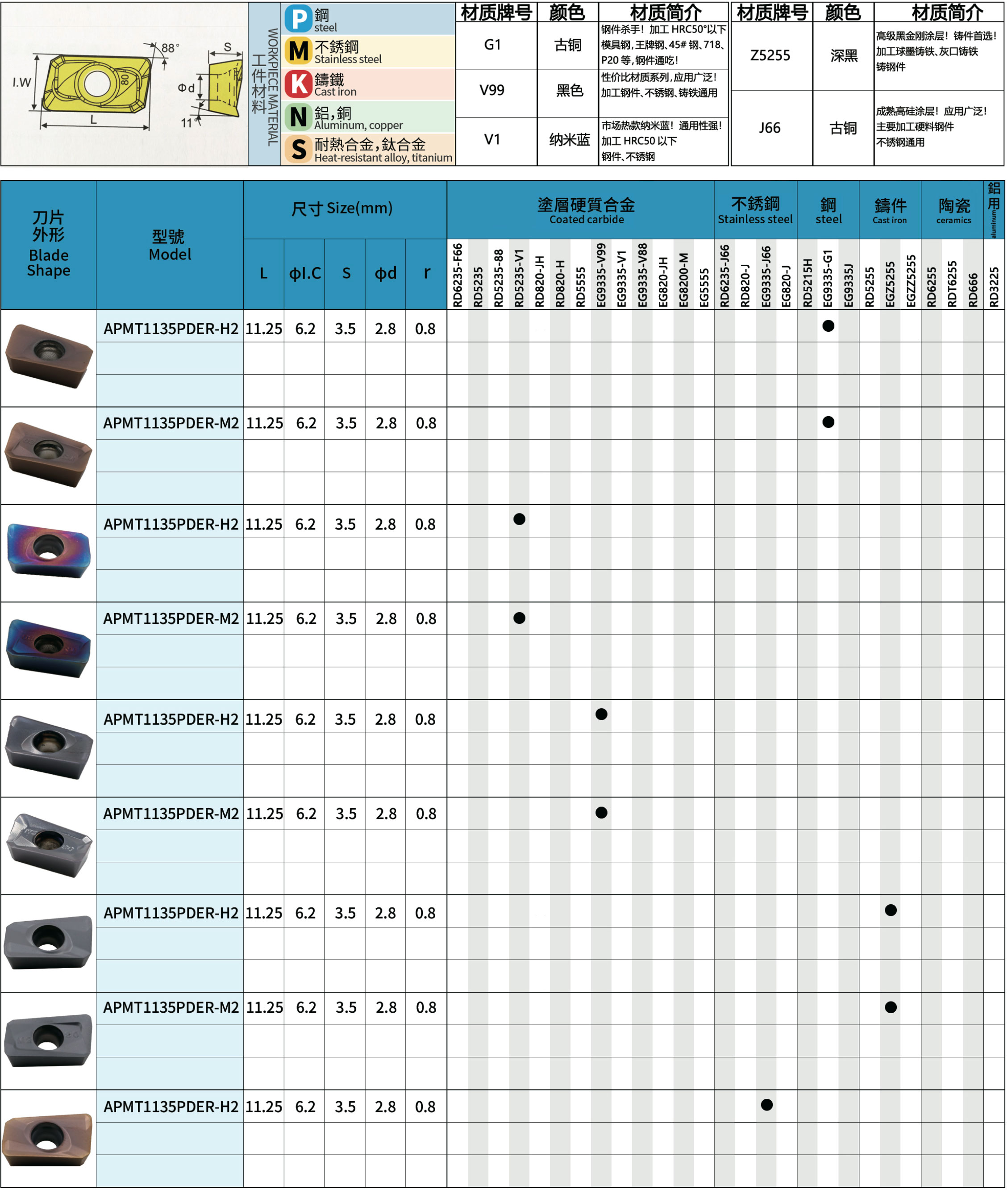 銑削刀片系列