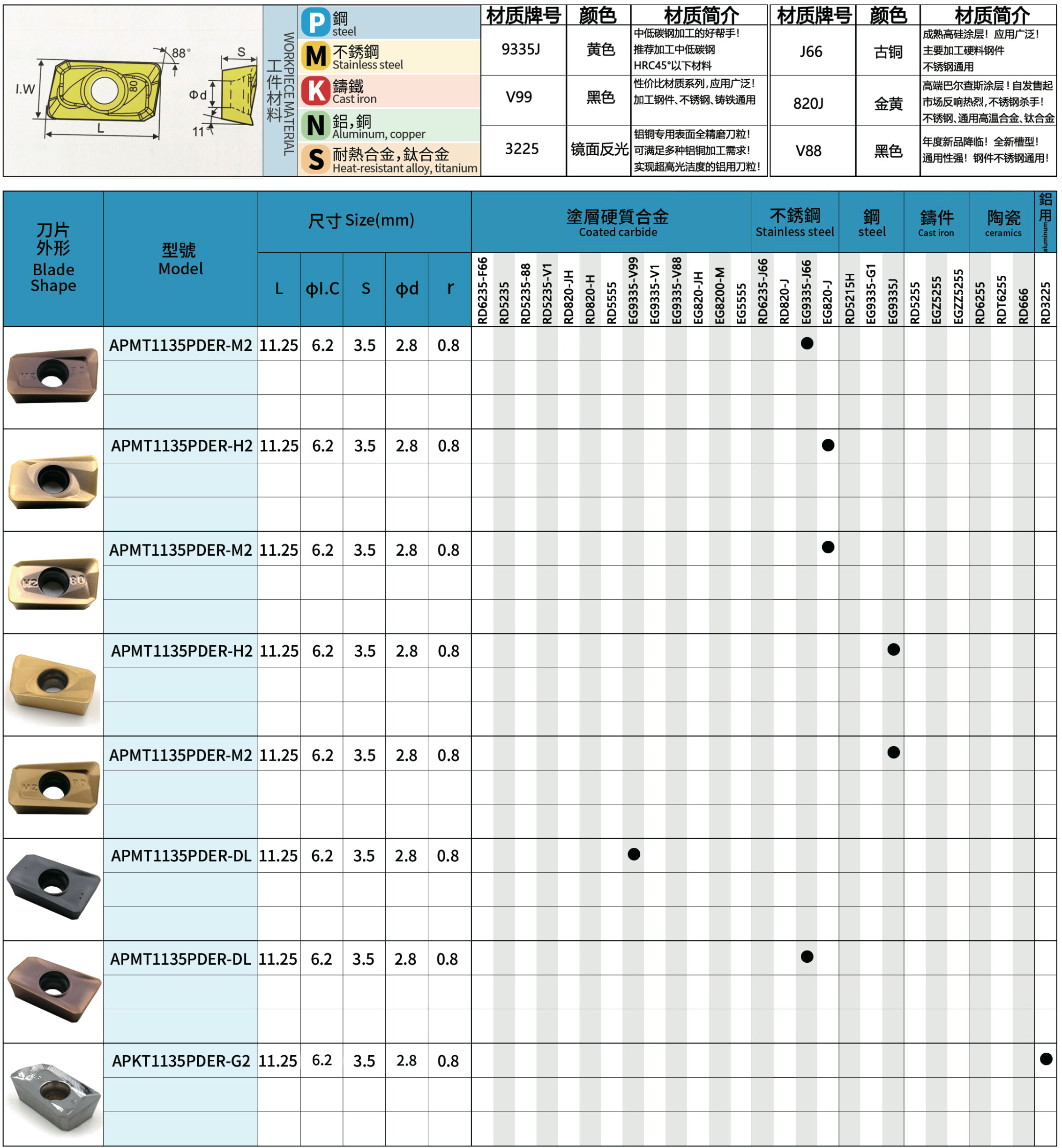 銑削刀片系列