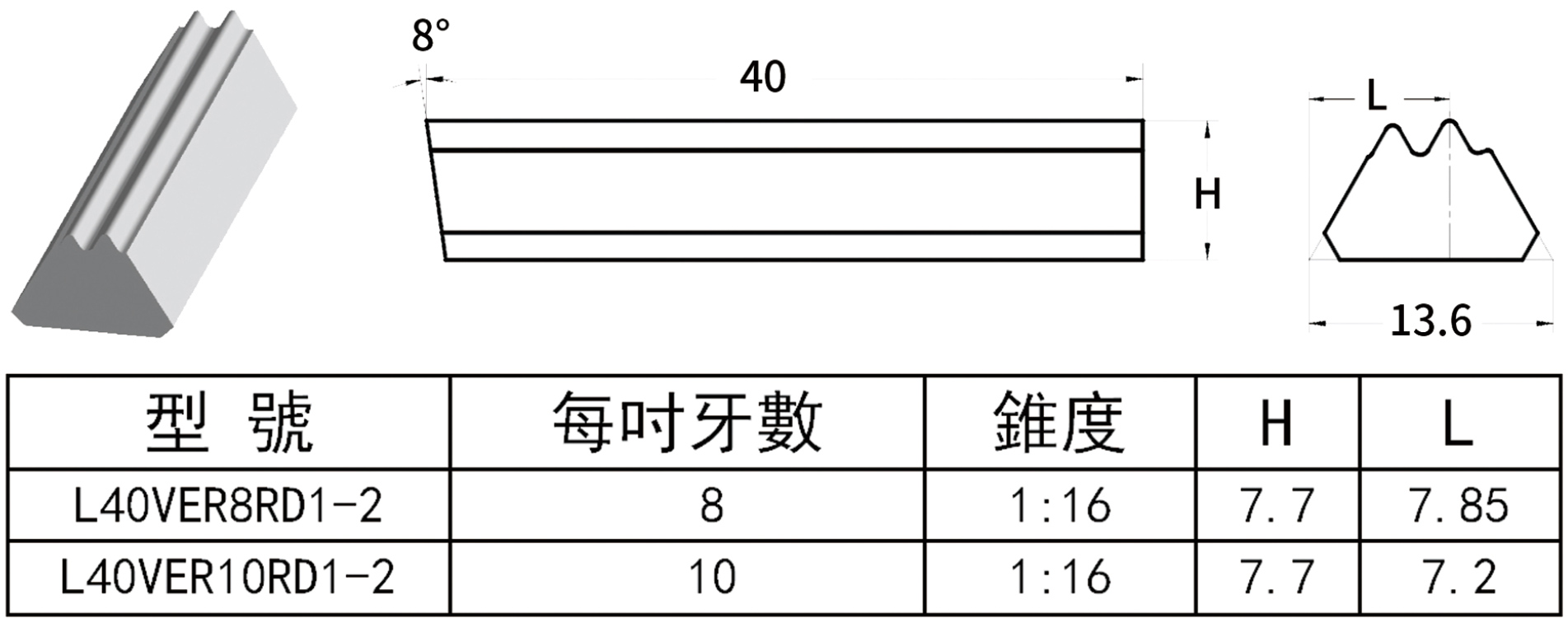 長條形油、套管外螺紋刀片 External API Round Inserts