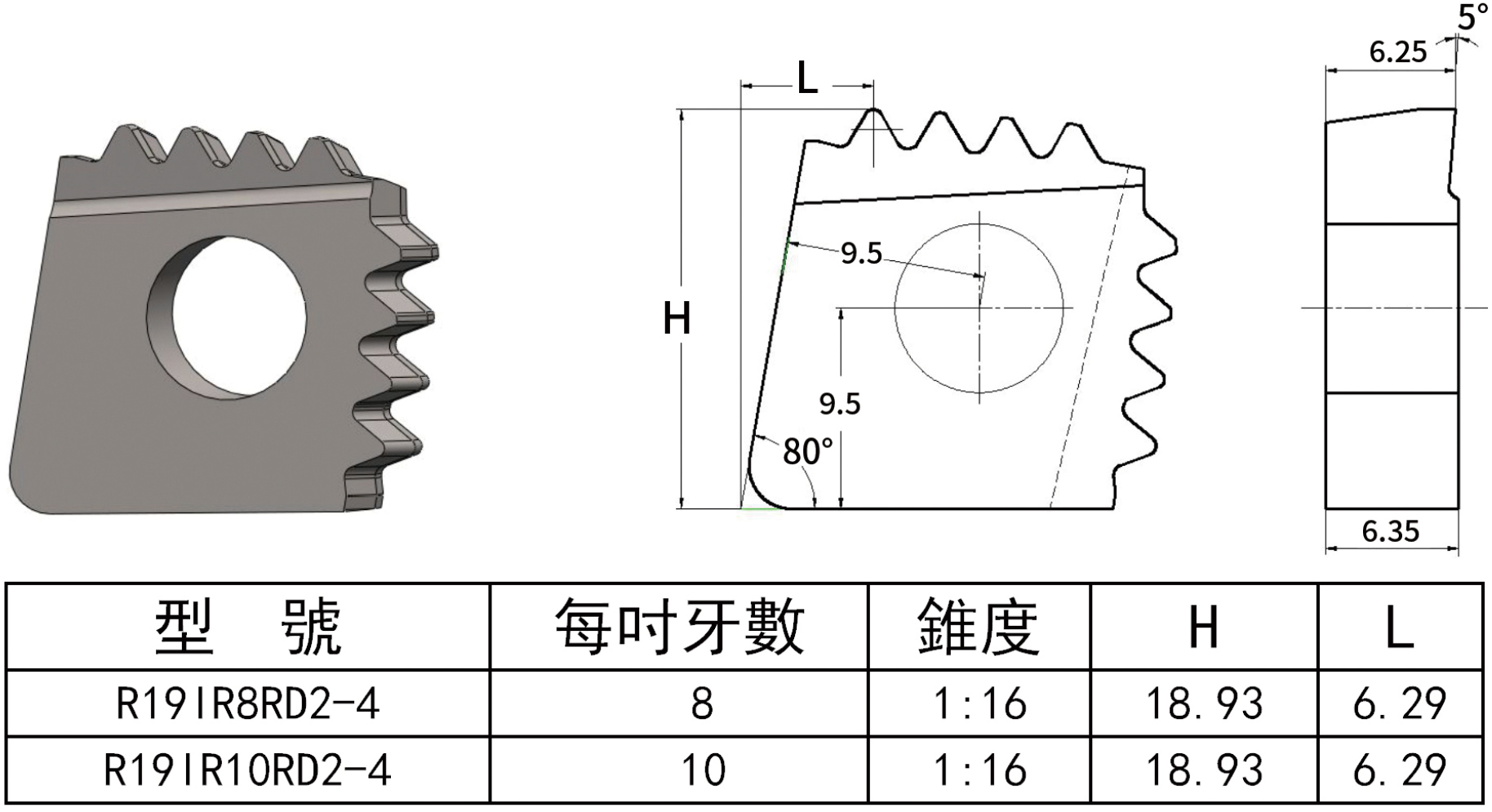 石油油、套管80°棱形圓扣內(nèi)螺紋刀片