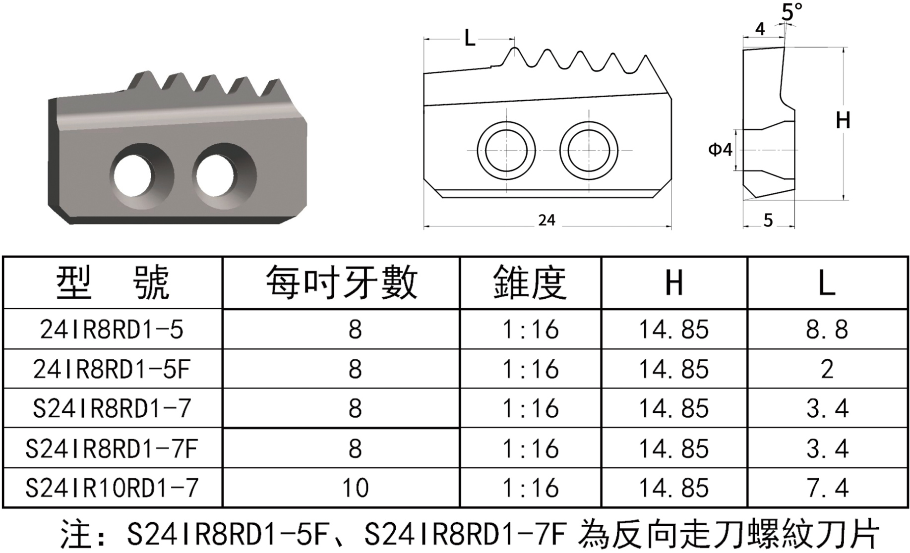 雙孔單刃平裝石油管圓扣內螺紋刀片