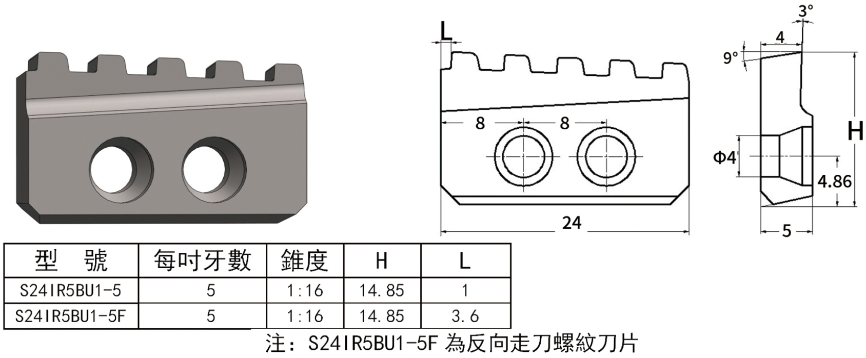 雙孔單刃平裝石油管偏梯扣內螺紋刀片