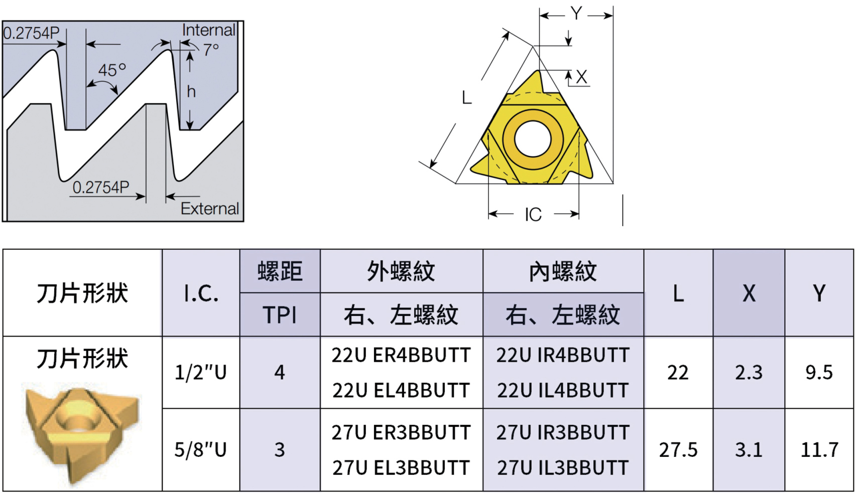 英制鋸齒形螺紋刀片(7°/45°) BBUTT U型